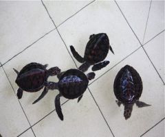 When the eggs hatch, usually about 45-60 days later, the hatchlings are taken and kept in basins or in a small pool before they are released at night, to increase their chances of making it to the sea, before being spotted by their natural predators.